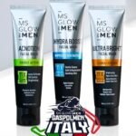Ada dua jenis produk perawatan wajah MS Glow for Men. Pertama, Facial Wash  hadir dalam tiga varian yang dirancang khusus untuk memenuhi berbagai kebutuhan kulit pria. Ultra Bright Facial Wash yang membantu mencerahkan kulit, Hydra Boost Facial Wash memberikan hidrasi maksimal, dan Acnotion Facial Wash untuk membersihkan kulit sekaligus mengatasi masalah jerawat.