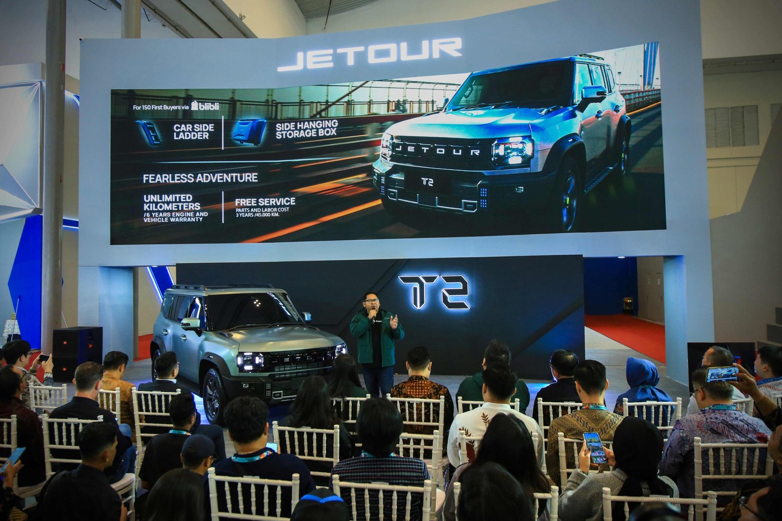 Program JETOUR T2 yang ditawarkan ini adalah early adventure benefits untuk 500 konsumen pertama. Tidak hanya itu, untuk 50 konsumen pertama JETOUR T2 yang melakukan pemesanan melalui Blibli juga akan mendapatkan tambahan keuntungan berupa aksesoris gratis Car Side Ladder dan Side Hanging Storage Box senilai 15 Juta Rupiah.